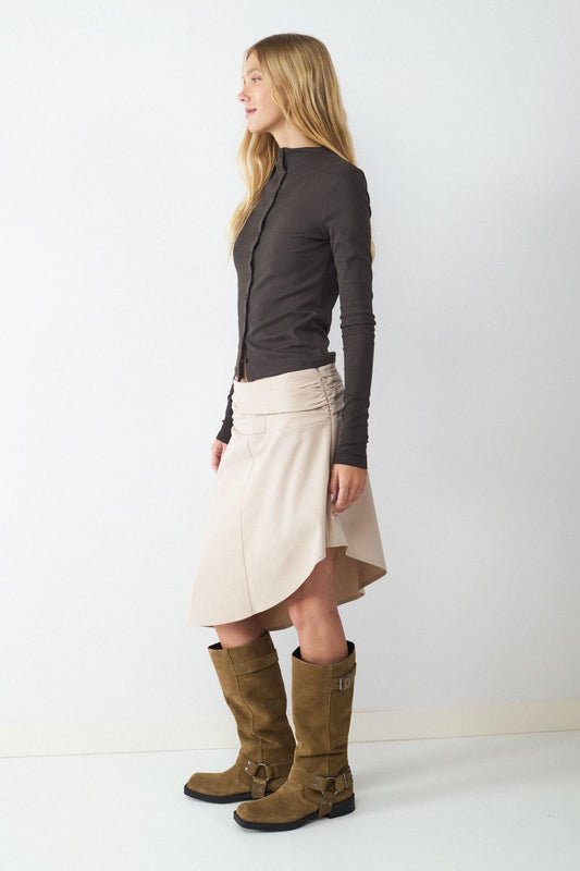 La falda plisada de BALMOHK aporta fluidez y elegancia a tu look con un enfoque contemporáneo. Si buscas una silueta con más fuerza visual, nuestra falda asimétrica juega con los volúmenes y cortes inesperados para crear combinaciones sofisticadas y llenas de personalidad.