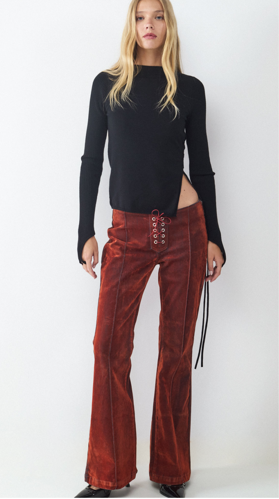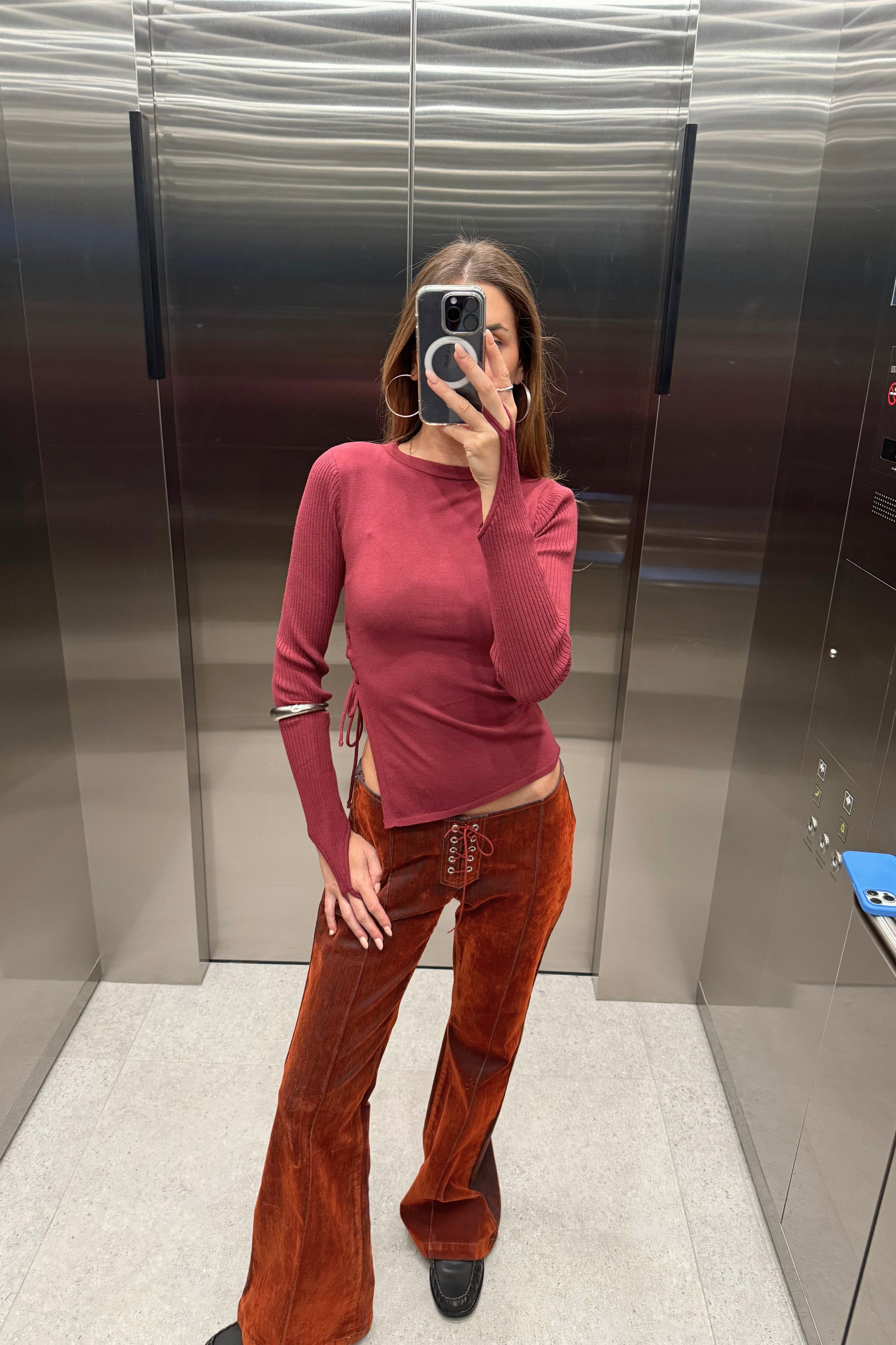 That perfect '70s red—somewhere between burnt orange and deep burgundy, totally timeless.