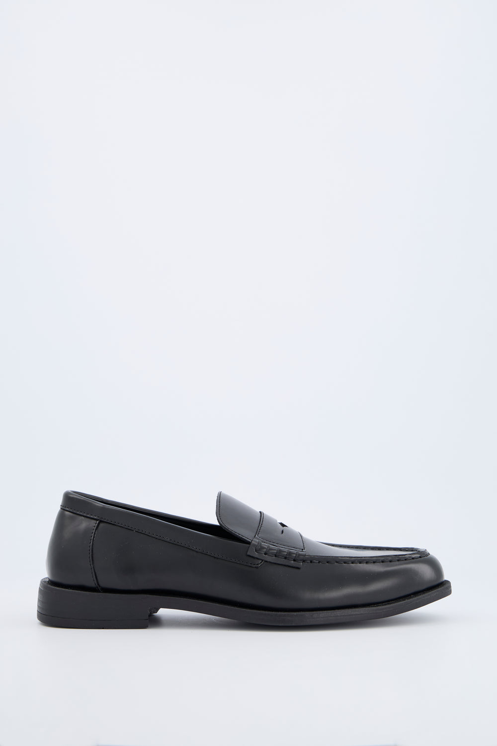 Men's loafer-style shoe with a round toe. Tonal stitching detail.