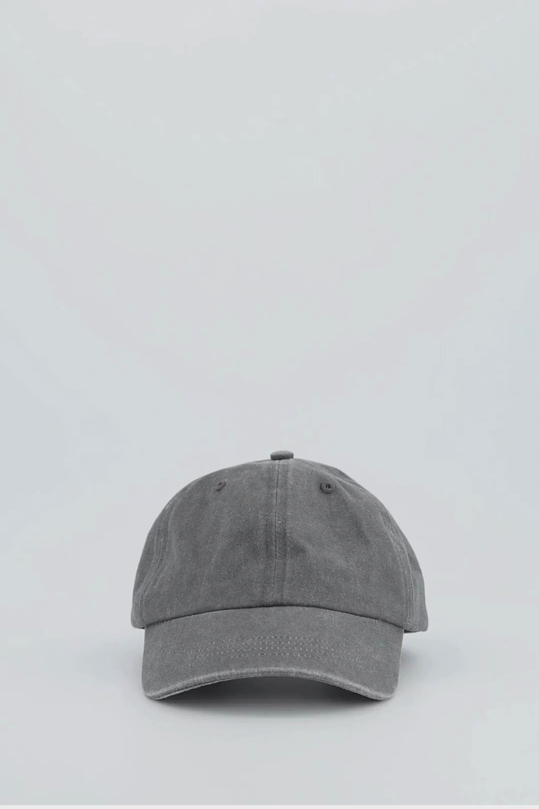 Gorra en color gris con acabado desgastado, confeccionada en algodón suave y resistente. Incluye visera curva y cierre ajustable para un calce cómodo. Su diseño minimalista y versátil la hace perfecta para looks casuales y uso diario.