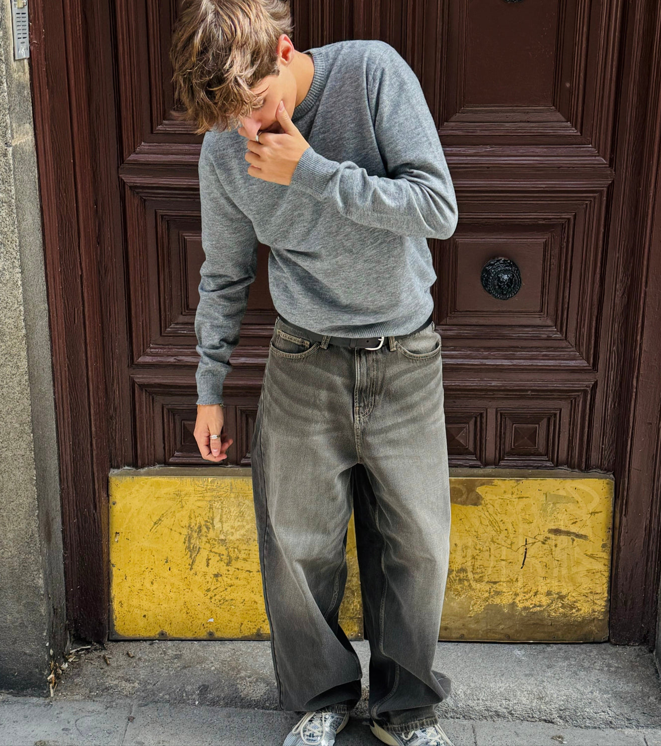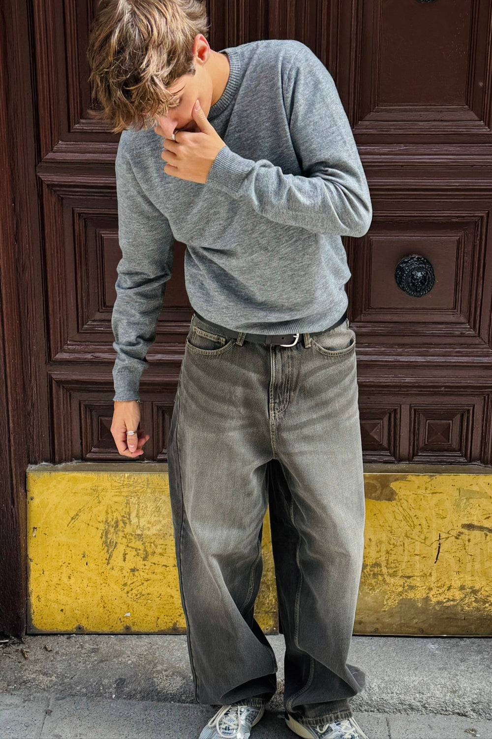 Jeans baggy hombre de algodón, con corte holgado, cinco bolsillos, cintura con trabillas y cierre de botón con cremallera. Su corte holgado ofrece una silueta relajada y contemporánea, ideal para quienes buscan un look urbano con total libertad de movimiento.