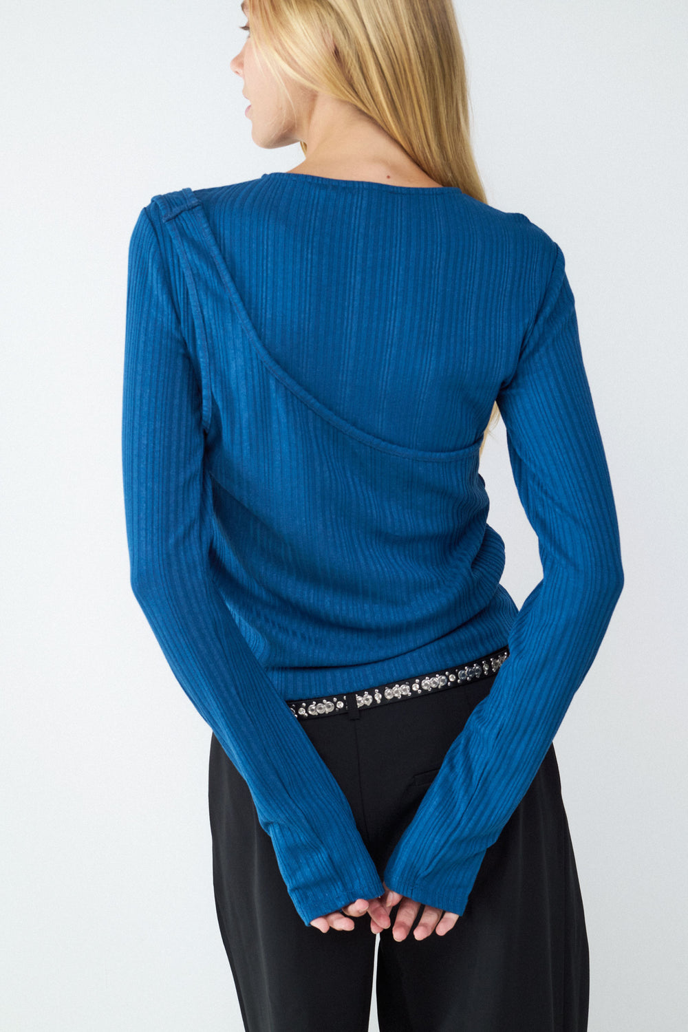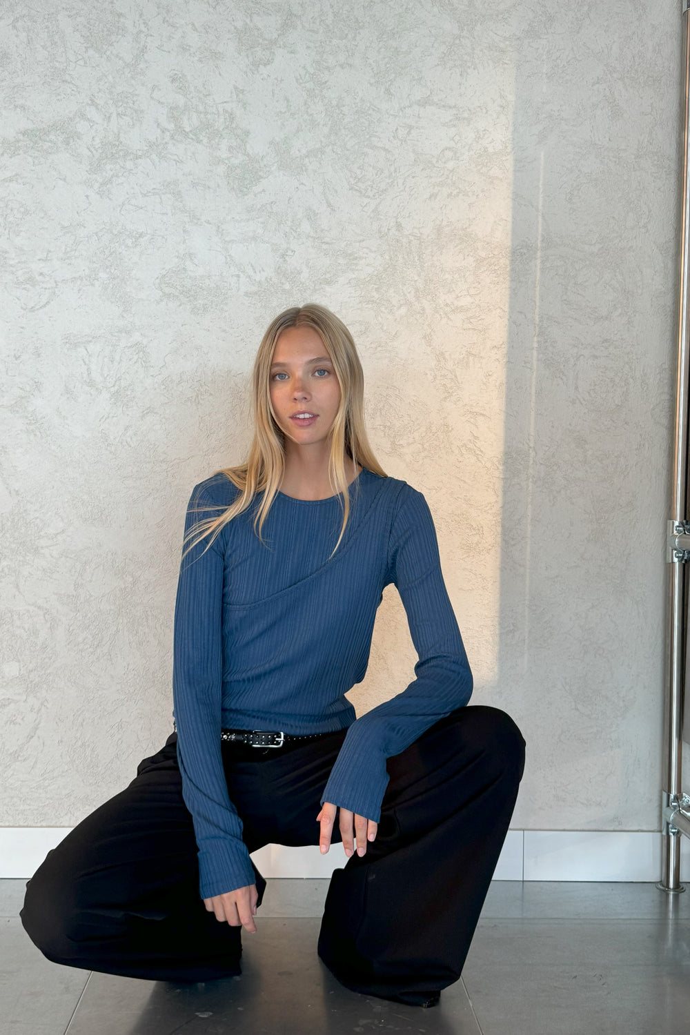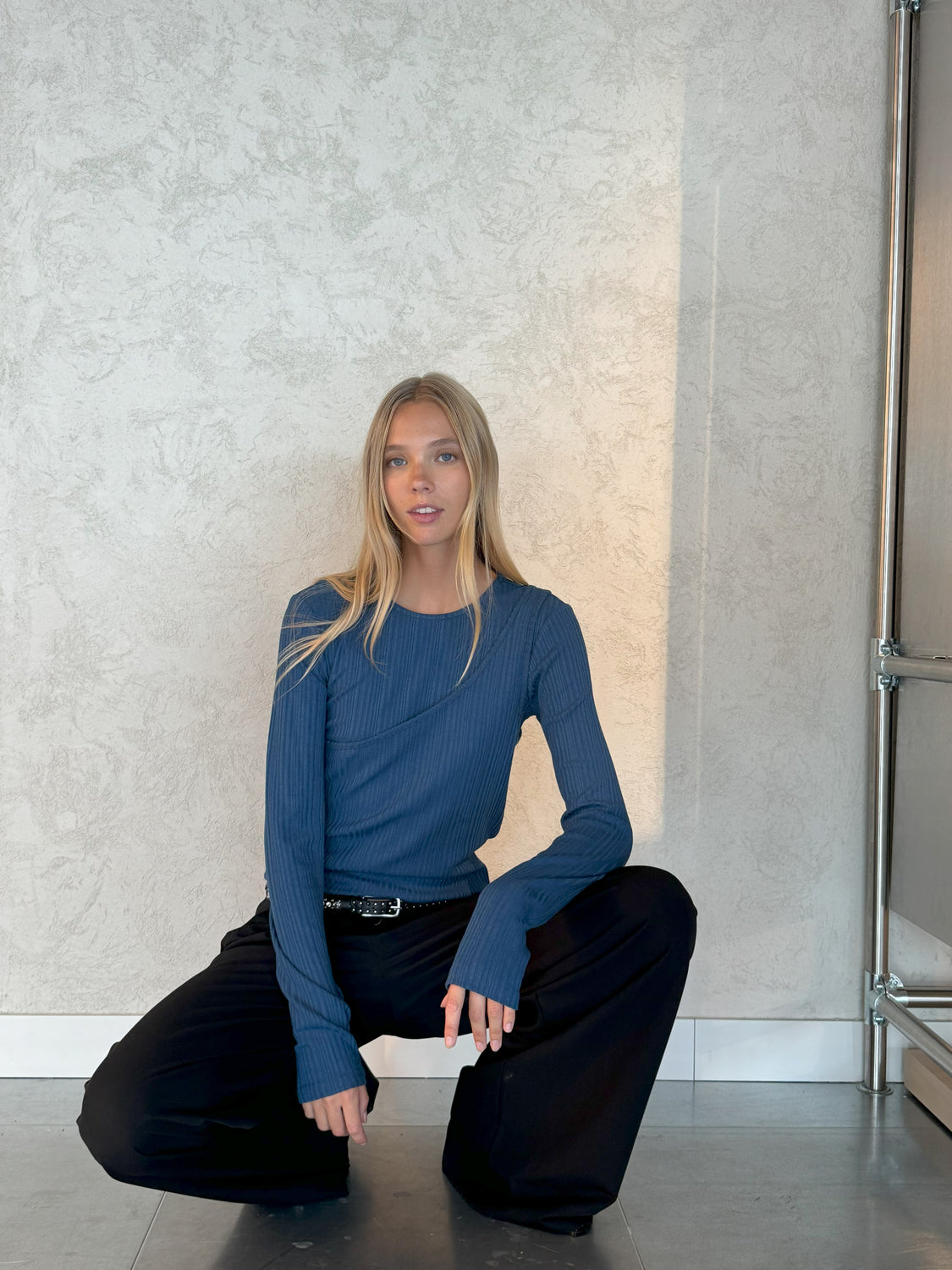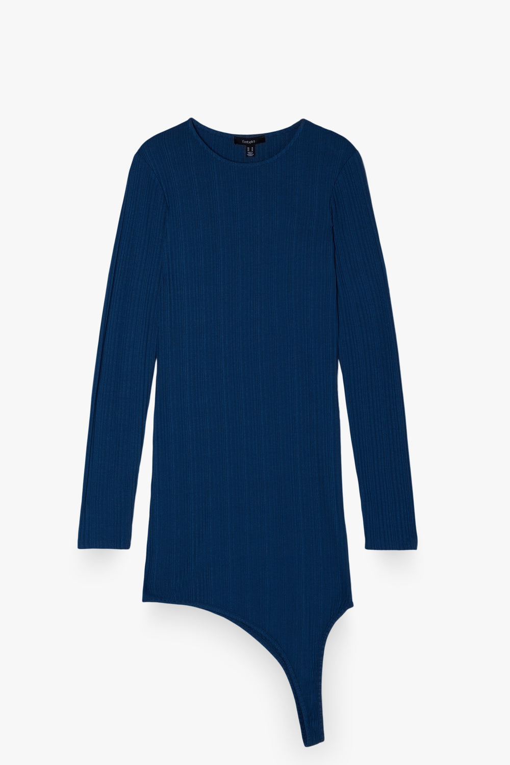 Vestido entallado de manga larga, diseño asimétrico con tiras en el bajo para anudar. Cuello redondo. Multifunción convertible en Jersey.