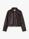 Chaqueta corta con escote redondeado y manga larga. Cierre frontal con tres ganchos metálicos decorativos. Diseño entallado y forro interior.