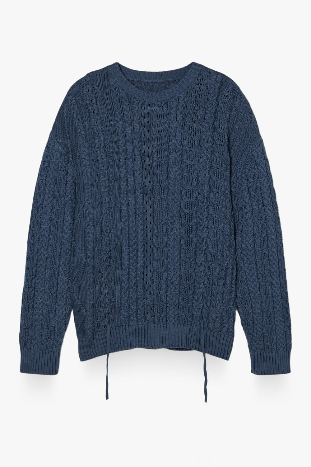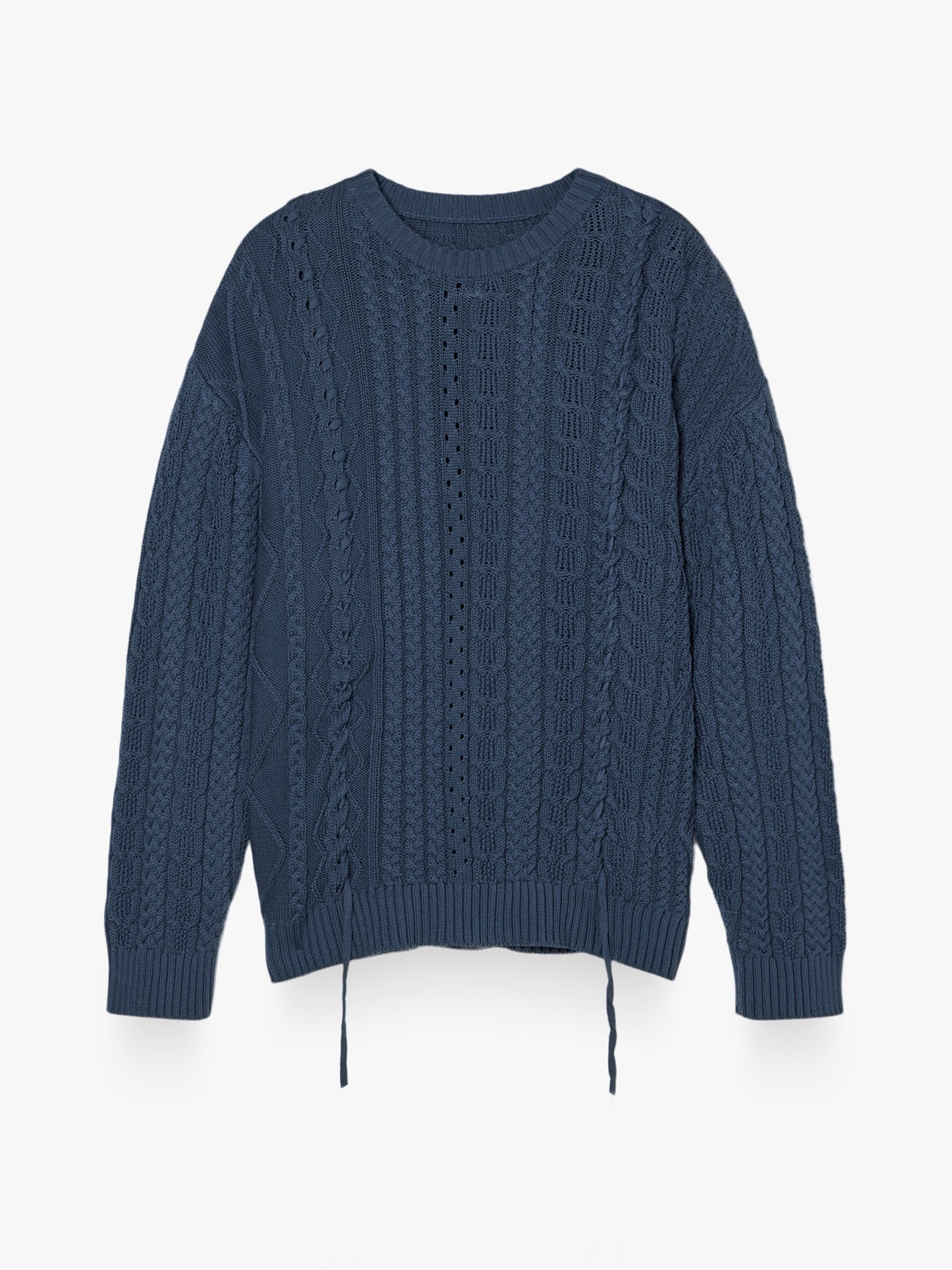 Jersey de punto con cuello redondo y manga larga, con un elegante diseño a cables que aporta textura y estilo. Confeccionado en tejido suave y cálido, ideal para el otoño e invierno. Perfecto para looks casuales y cómodos con un toque clásico.
