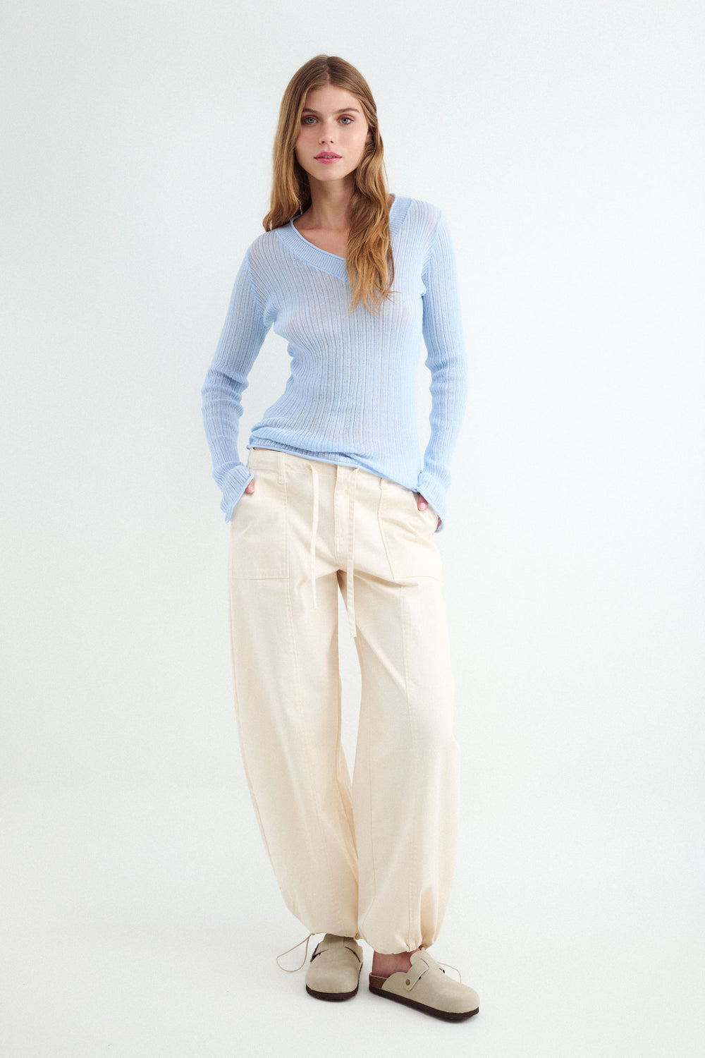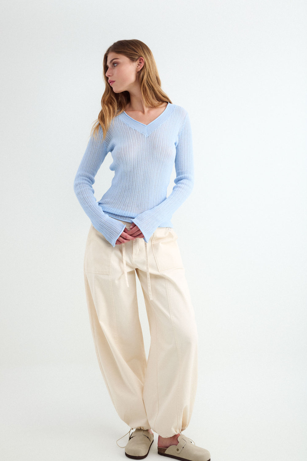 Jersey de punto fino de cuello pico. con corte ajustado