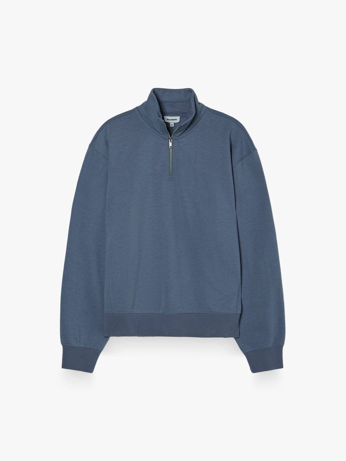 Sudadera de corte relajado con media cremallera frontal y cuello subido. Confeccionada en tejido suave con acabado efecto lavado que aporta estilo único. Puños acanalados y bajo elástico para un mejor ajuste. Perfecta para entretiempo y uso diario.