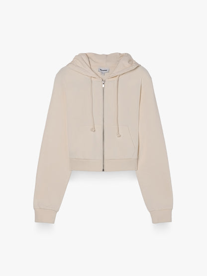 Sudadera básica con capucha y cierre frontal de cremallera. Bolsillo canguro, puños y bajo acabados en canalé.