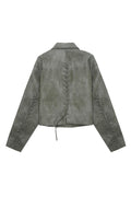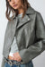 Gabardina con puños de piel sintética, cuello de solapa, cierre frontal con botones y cinturón.
