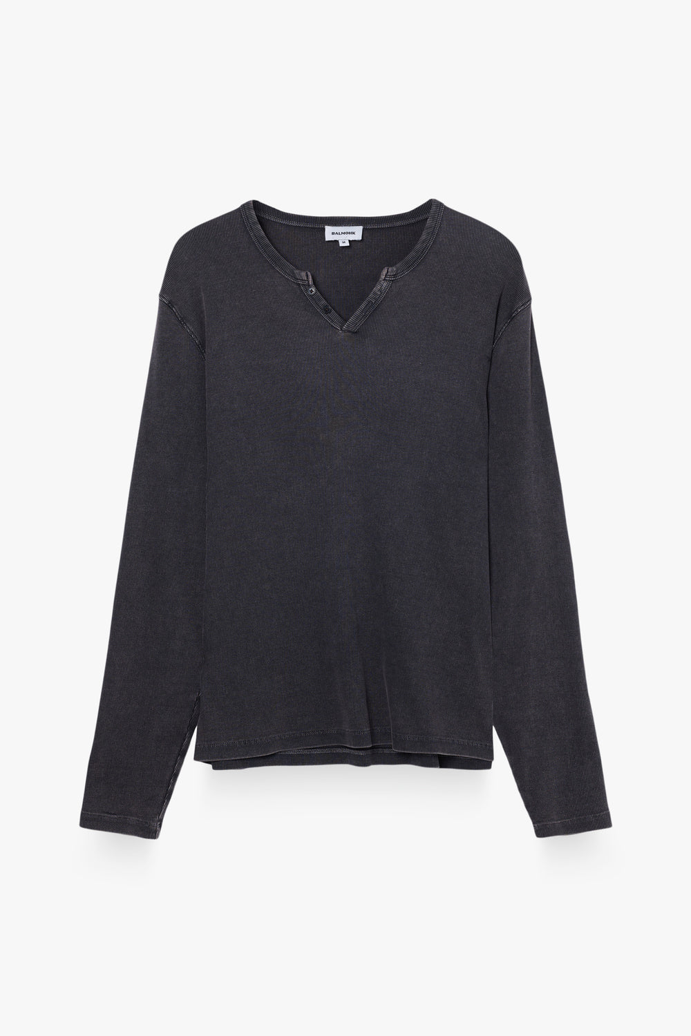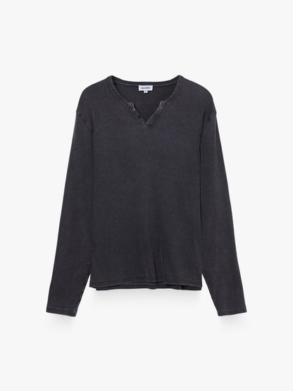 Camiseta de cuello pico y manga larga con efecto lavado, ideal para un estilo casual con un toque desgastado y auténtico.